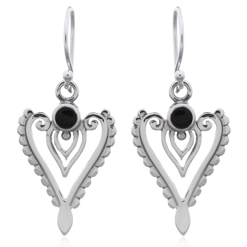 Discover the bold elegance of these dangle earrings with hearty black synthetic stones. Their striking design and quality craftsmanship make them a must-have for your store. Enjoy the advantages of products manufactured under strict quality control measures.