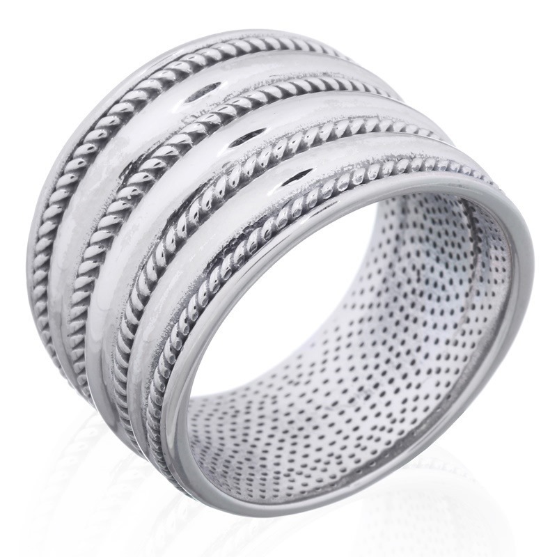 This highly polished ring features a rope border design, adding a touch of classic elegance to any collection. Perfect for customers seeking timeless, sophisticated jewelry. Enjoy the benefits of our high-quality materials and manufacturing.