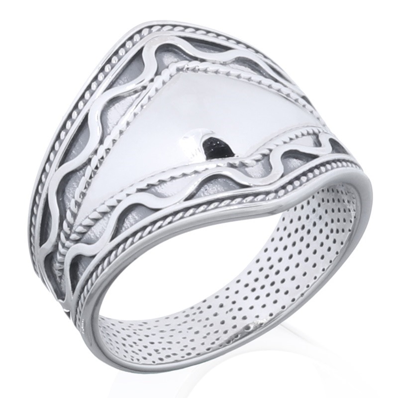The highly polished rhombus ring with wavy lines border adds a distinctive style to any collection. Great for attracting customers looking for modern elegance. Experience our superior product quality.