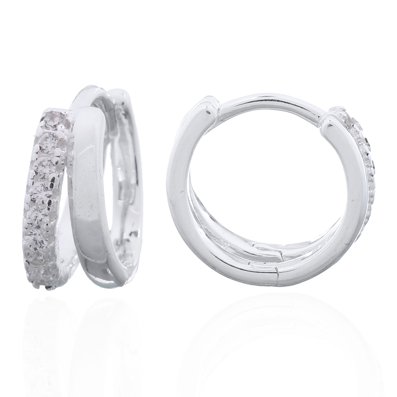 Designed for effortless elegance, these 925 silver-plated split hoop earrings feature dazzling cubic zirconia accents in a pave setting that add a refined yet contemporary sparkle. Their secure closure ensures a comfortable and snug fit, the hinged design super easy to wear, making them ideal for both everyday wear and special occasions. Combining versatility with timeless sophistication, these hoops are a perfect addition for customers seeking stylish, practical, and enduring jewelry.
