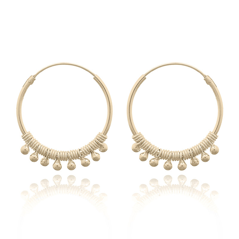 Bohemian style chic and hippie yellow gold plated hoop earrings. Make your friends get jealous of you by having this pair of lovely earrings!