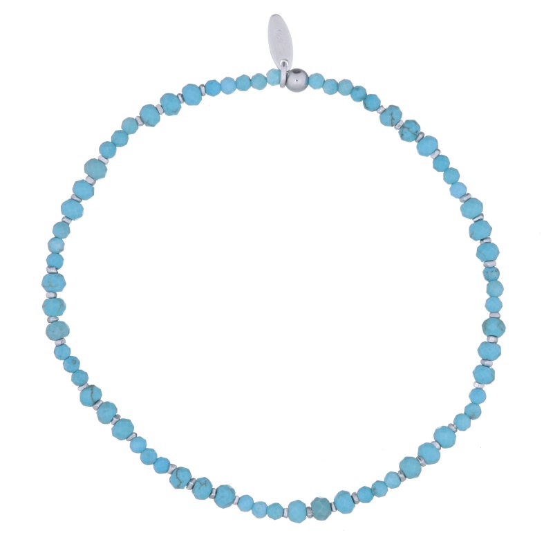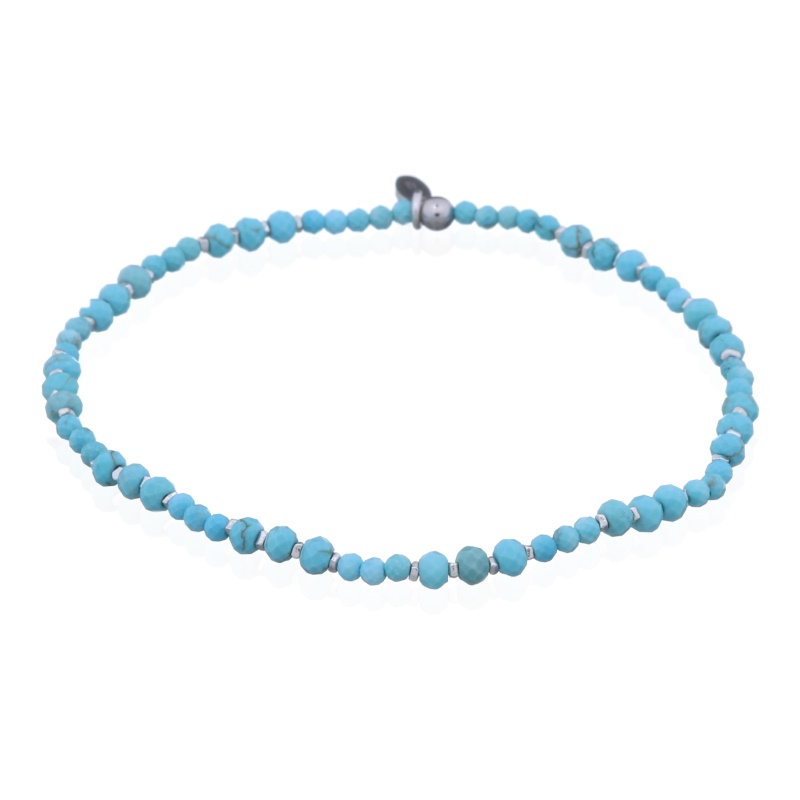 Featuring howlite turquoise and 925 sterling silver bead spacers, this bracelet is a striking addition to any jewelry line. Its vibrant colors and unique design attract those who appreciate natural beauty. Enhance your inventory with this captivating and meaningful piece!