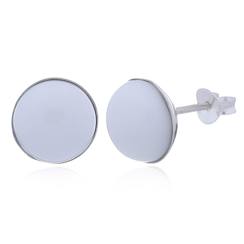 Silver Hydro Quartz jewelry accentuates the looks with its bright and light appearance generated by the high polished silver and the beautiful polished white semi-spheres. These small charming Sterling Silver Hydro Quartz stud earrings add a breeze of elegance and lighten up the features with their dainty appearance. The cup shaped setting staging the bezel set cabochons make these silver earrings easy on the ear. Secured with silver butterfly backs women feel safe not to loose their chic handmade earrings.