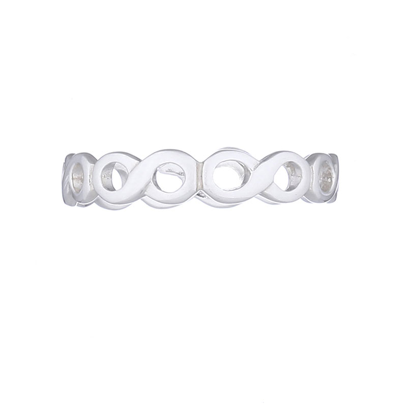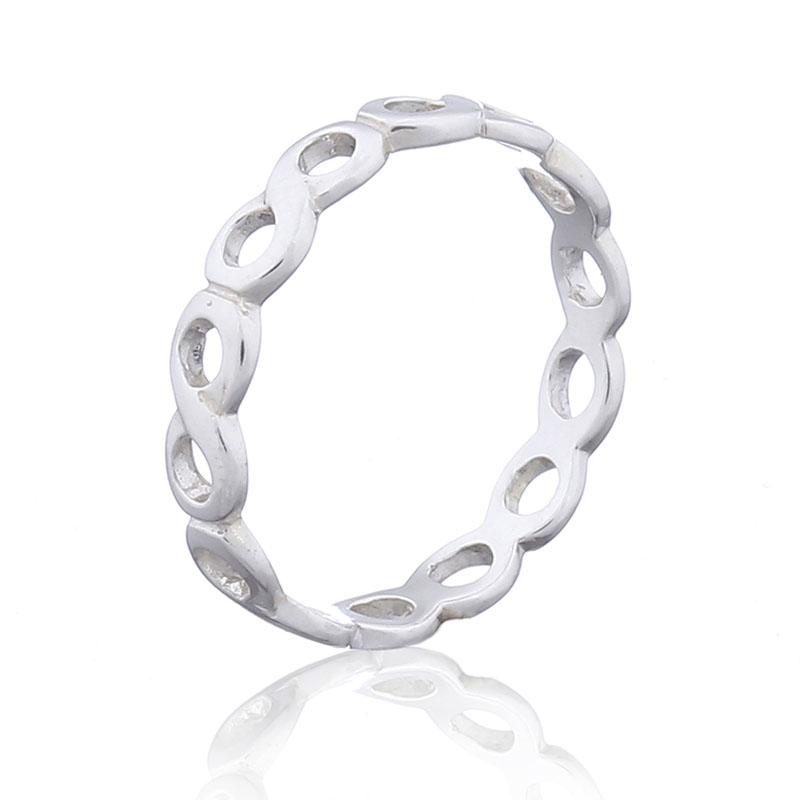 Silver infinity symbol ring is composed a band of infinity symbols of about 4 mm wide connected end-to-end and with the excellent casting job and high polish finish this silver band is just a very beautiful present to give. Definitely this infinity ring is worth having in your jewelry inventory.