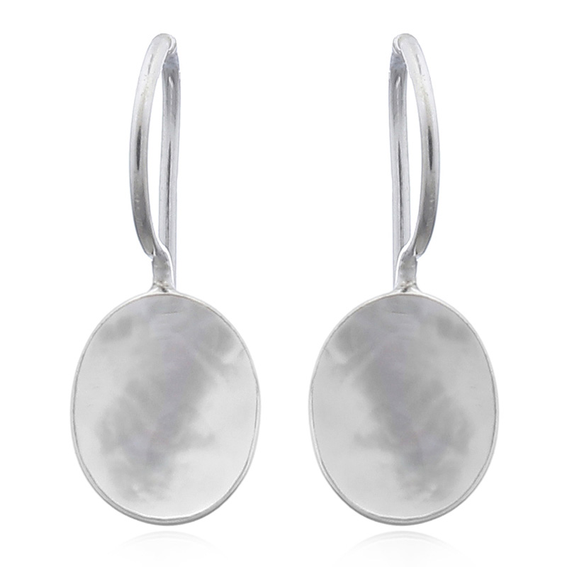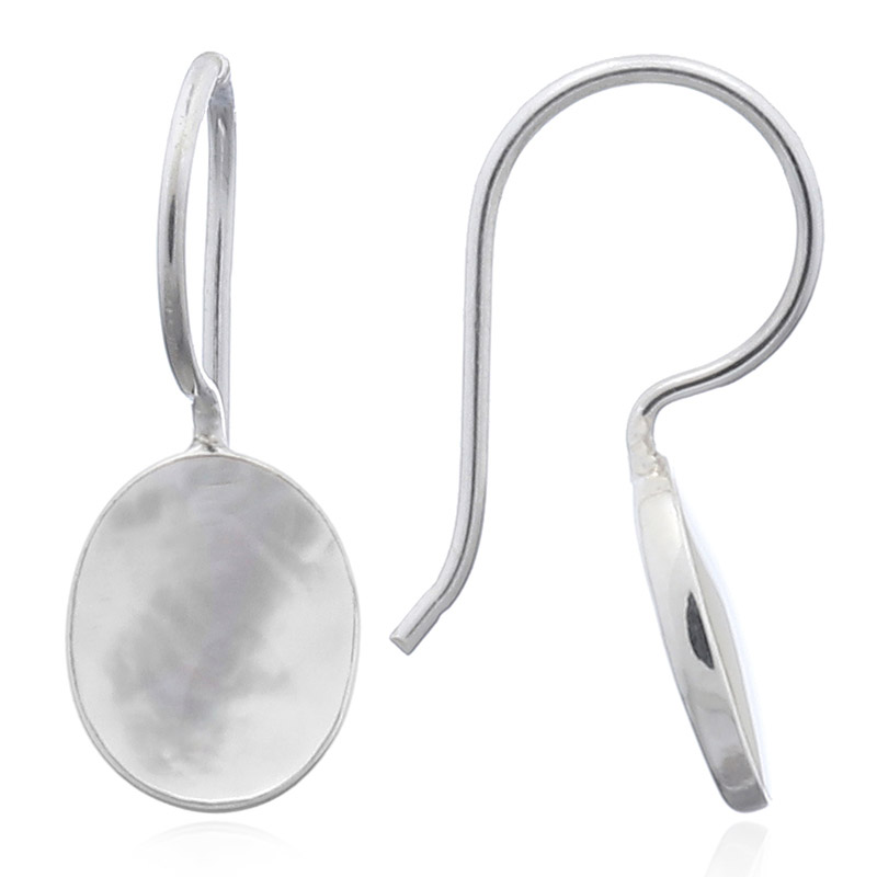 The iridescent sheen of the two oval pieces of MOP is complemented by the glow of highly polished Sterling Silver where they are neatly set. The result are these lovely Drop earrings that due to its price and beauty become commercially valuable Jewelry.