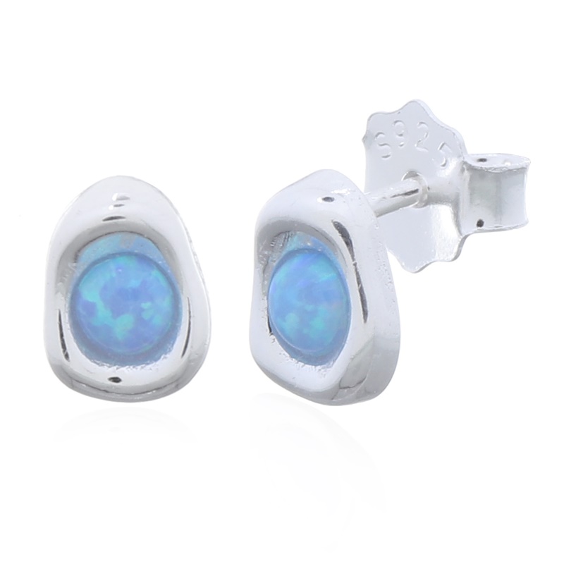 The irregular shape of these earrings showcases a round blue opal, offering a contemporary and artistic flair. Perfect for fashion-forward customers, they make a unique addition to any jewelry collection. Don’t miss out on this stunning design!