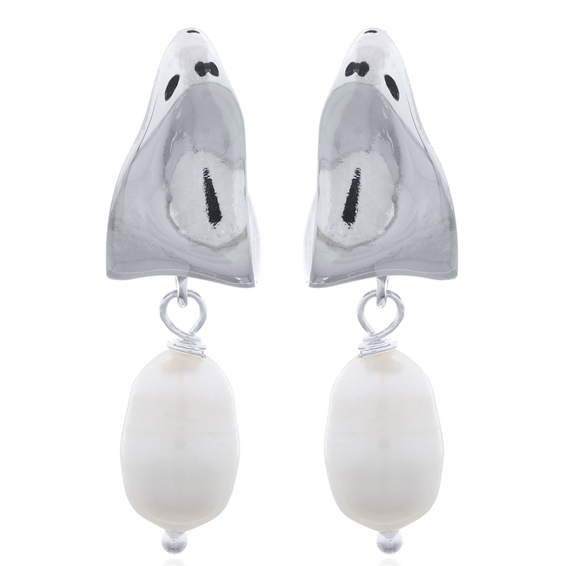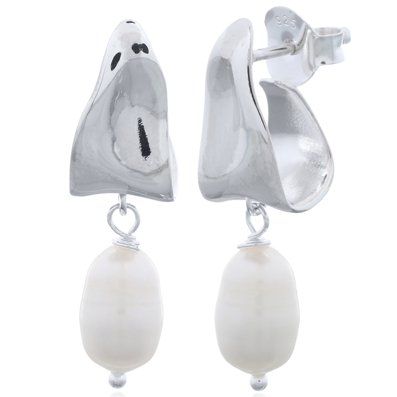 Irregular Trapezoid With Hanging Freshwater Pearl 925 Silver Studs