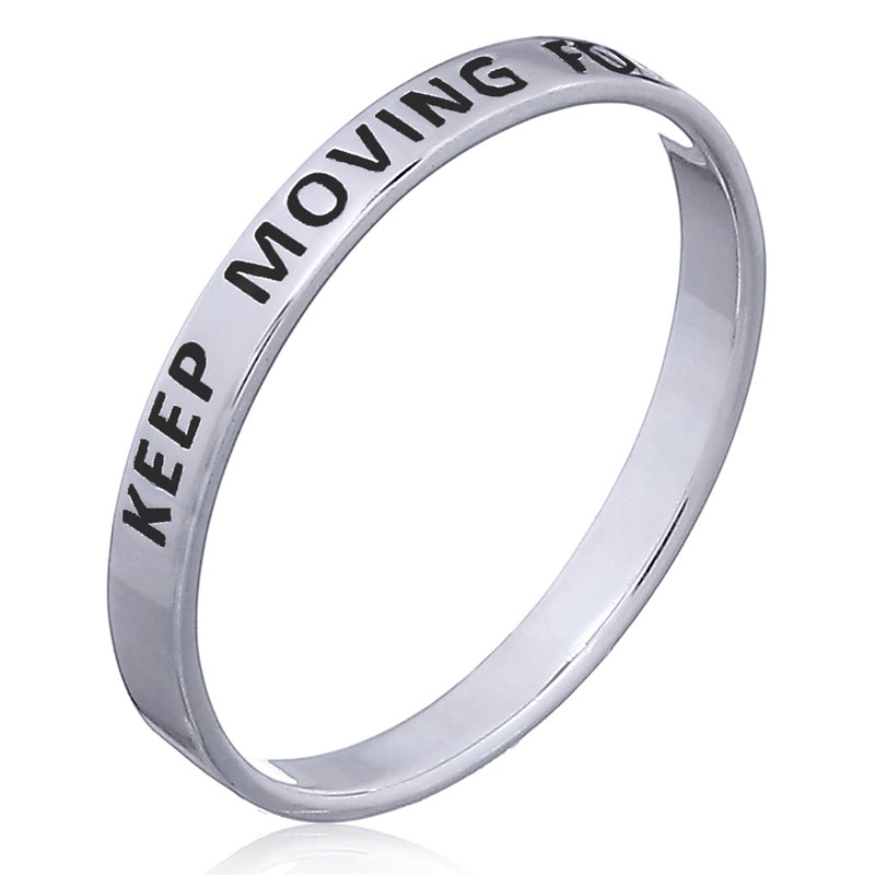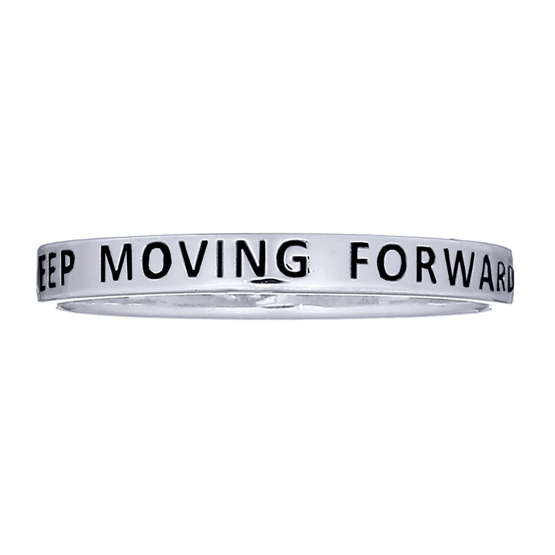Inspirational jewelry design “Keep Moving Forward” sterling silver band ring.