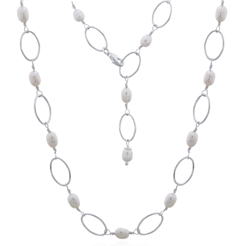 Large Link 925 Sterling Silver Necklace with Freshwater Pearl combines bold modern style with classic elegance. Crafted from 925 silver and featuring a luminous freshwater pearl, it appeals to customers seeking statement pieces that stand out from typical offerings.