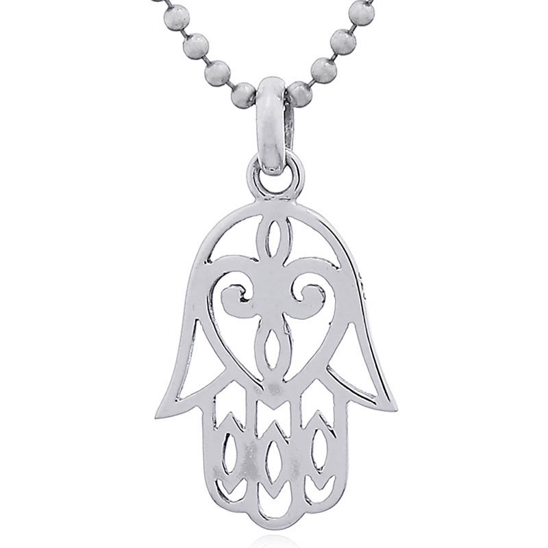 925 silver pendant formed by beautiful silver lines that create the outline of a hand with a heart in its center.