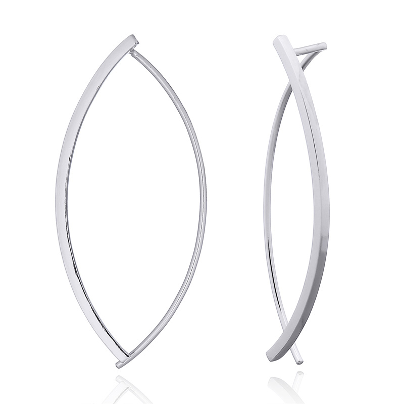 Two silver curves are joined with a thin stick that formed as a marquise shape in front view. The design is very stylish in simple drop that we created one of the presents for feminine.