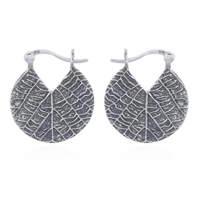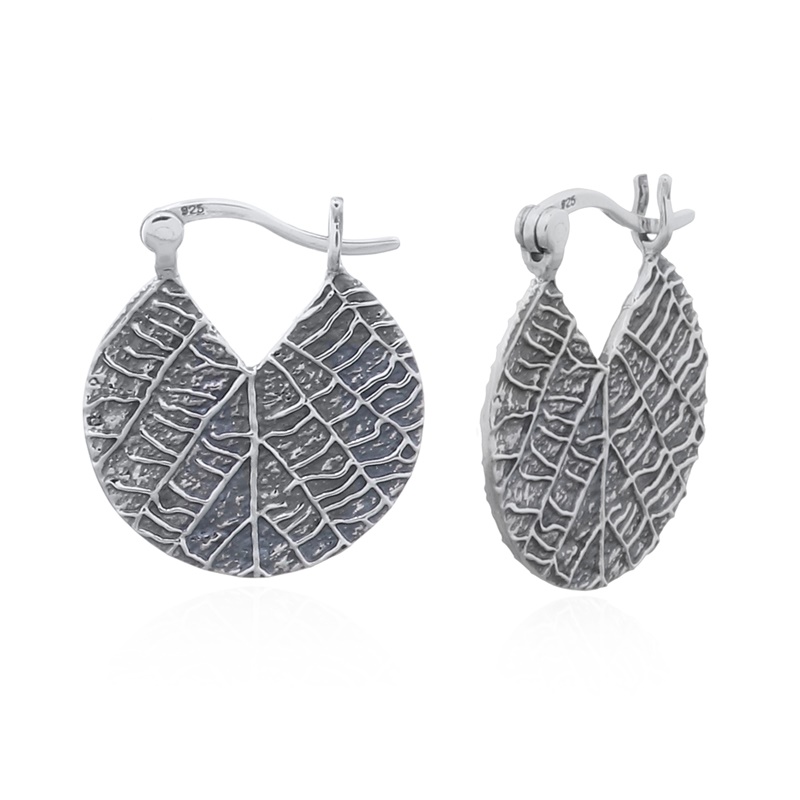 The leaf imprint sterling silver hoops offer a nature-inspired design, perfect for customers seeking organic and earthy jewelry. Their intricate leaf pattern adds a touch of elegance and uniqueness. Enjoy the benefits of products made in our own facility.