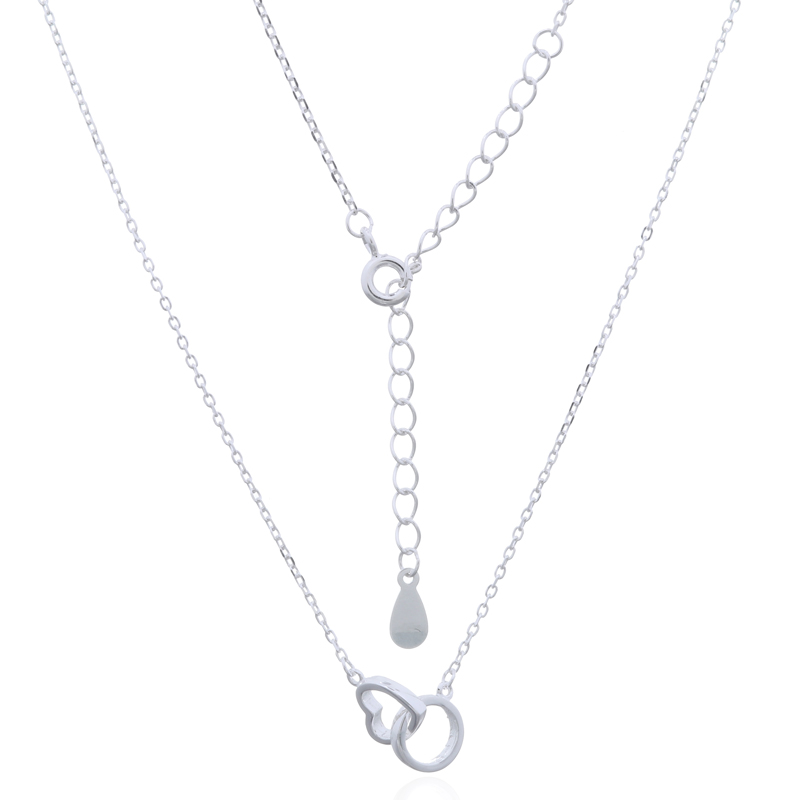 Crafted from sterling silver, this necklace showcases a linked open heart and circle, representing enduring love and connection. Its elegant design makes it a versatile accessory for any occasion. Stock this stunning piece for your customers!