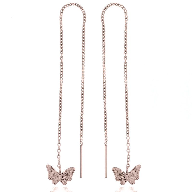 Featuring charming butterflies in a rose gold finish, these threader earrings are perfect for fashion-forward customers. Their playful design brings a touch of fun to any outfit. Stock these delightful earrings for your trendy clientele!