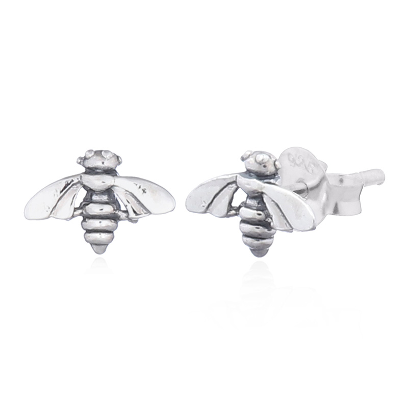 Casted Silver 925 in Little Bee as a jewelry and stud earrings. Highly polished and also oxidized in filaments.