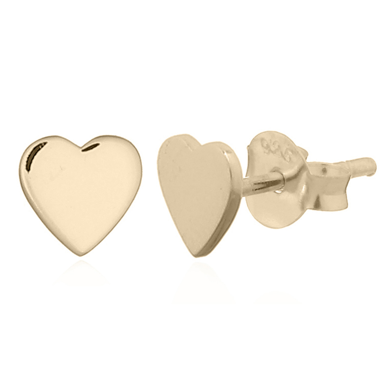 Plain Little Heart stud earrings is made by 925 sterling silver and flash yellow gold plated.