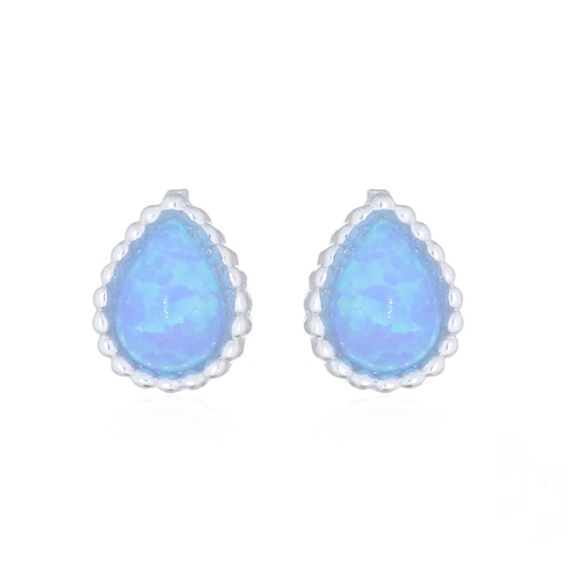 Capture the serene beauty of blue opal with these teardrop stud earrings. Their calming hues and elegant design make them a perfect addition to any collection. Offer these to attract customers who appreciate unique and meaningful jewelry!