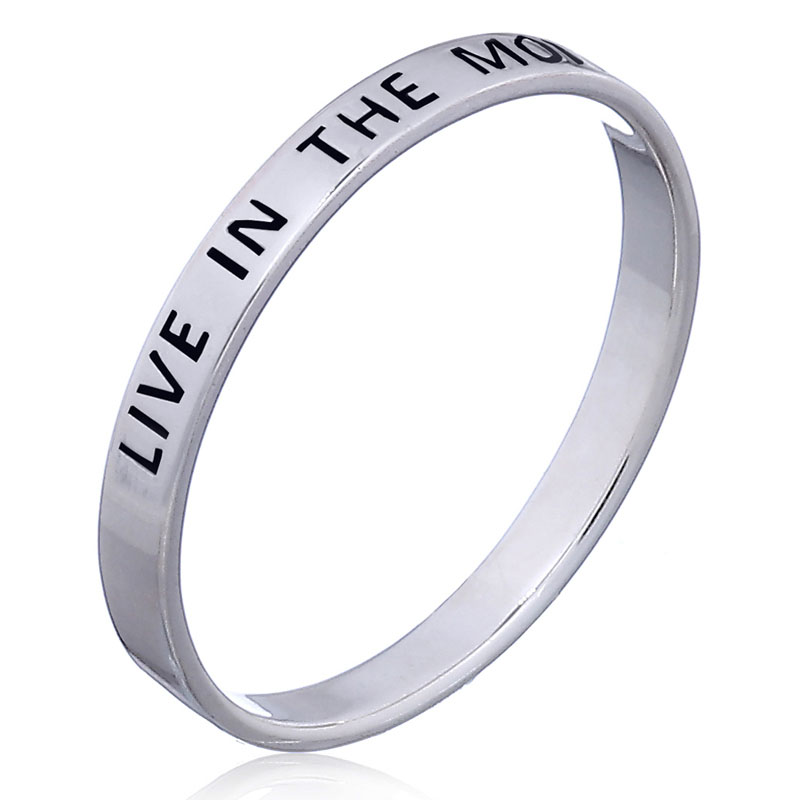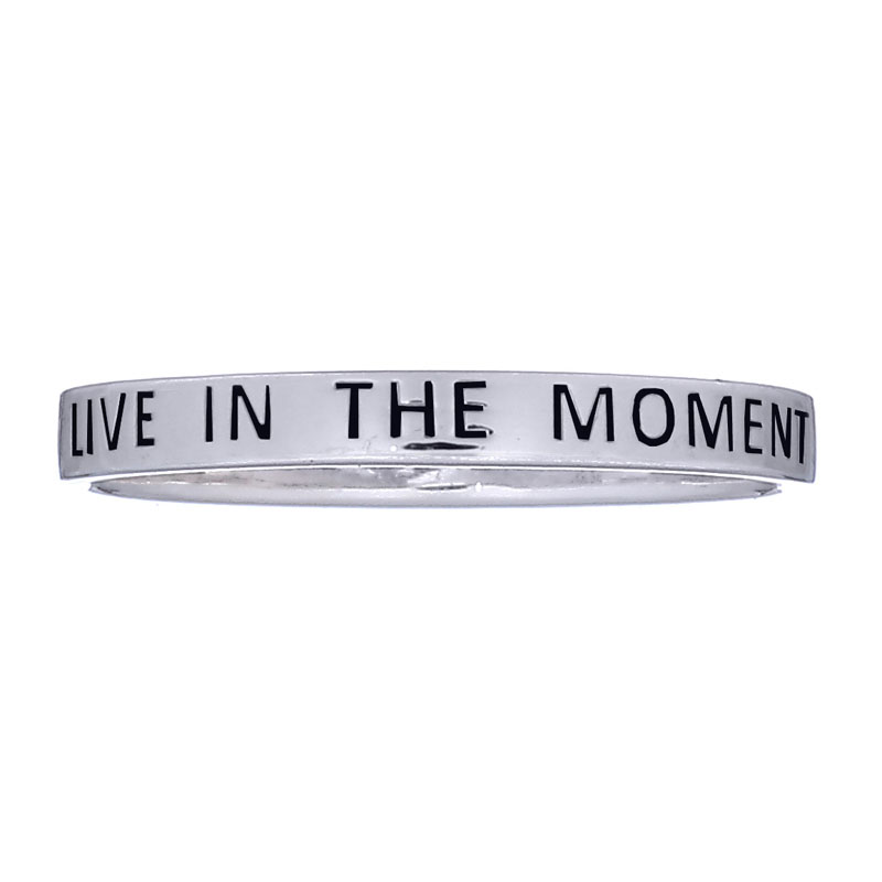 “Live in The Moment” Silver message Band Ring (Larger Size).