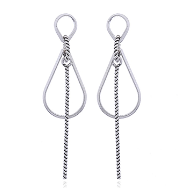 Sterling Silver stud earrings leave a rich impression evoked by the contrast created by the long twisted stick that moves independently of a polished open teardrop shape.