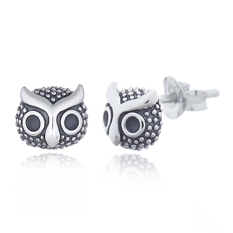 Little cute owl is with two black eyes and plain highly polished silver eyebrow that is very stunning and shinning. Some old traditions believe that owls bring luck and wealth.