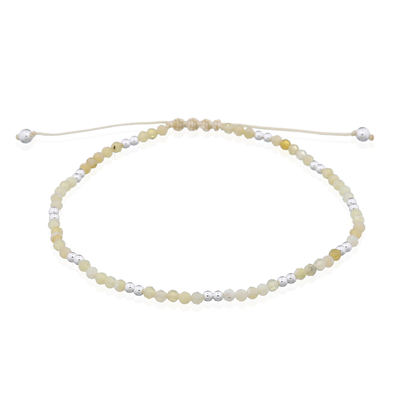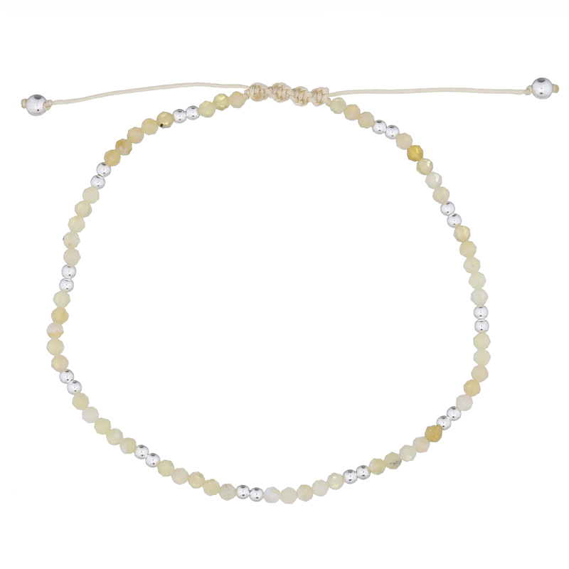 Featuring lovely yellow opal stones paired with silver spheres, this polyester bracelet brings warmth and cheer. Yellow opal is associated with optimism, making it an uplifting addition to any jewelry collection. Offer your customers this vibrant accessory for a joyful touch!