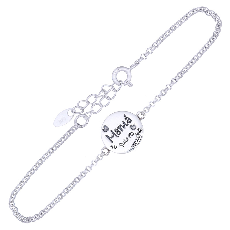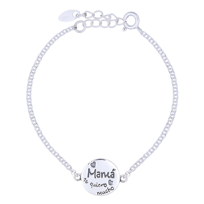 “Mama Te Quiero Mucho” message engraved in sterling silver round flat disc-shaped which means “I love you so much Mom” in Spanish.