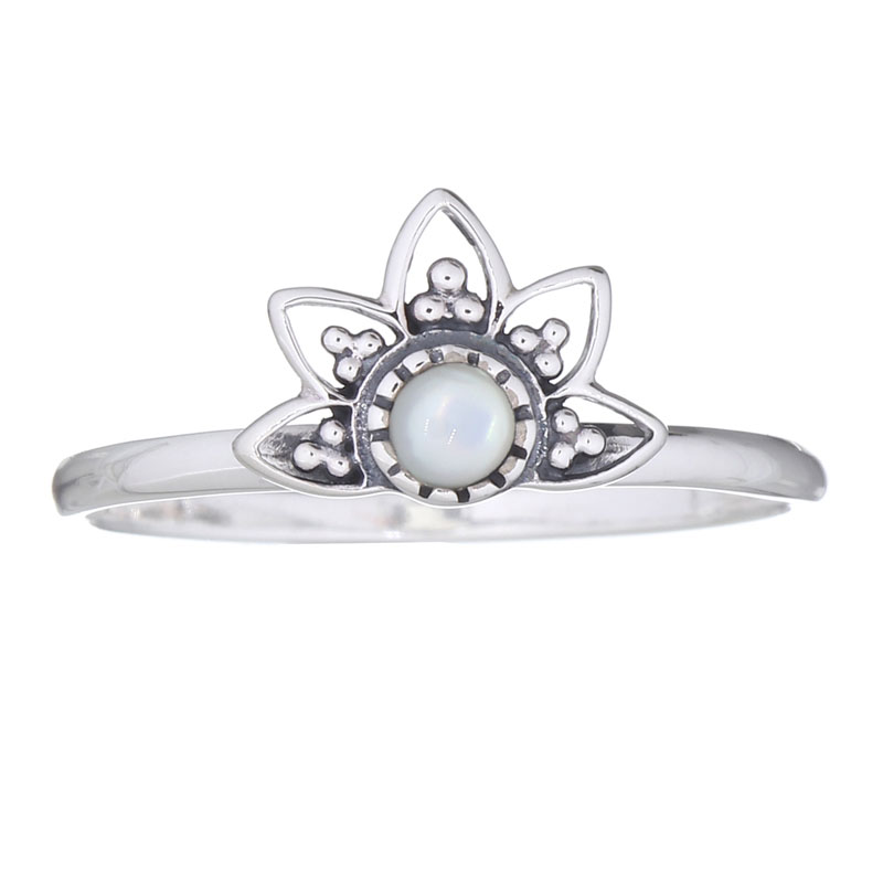 Adorned with mother-of-pearl, this mandala lotus ring brings a serene touch to any collection. Its intricate design embodies peace and harmony, making it an excellent choice for retailers focused on offering calming and beautiful jewelry.
