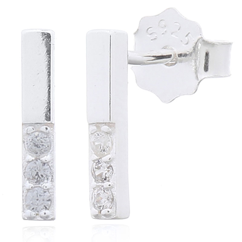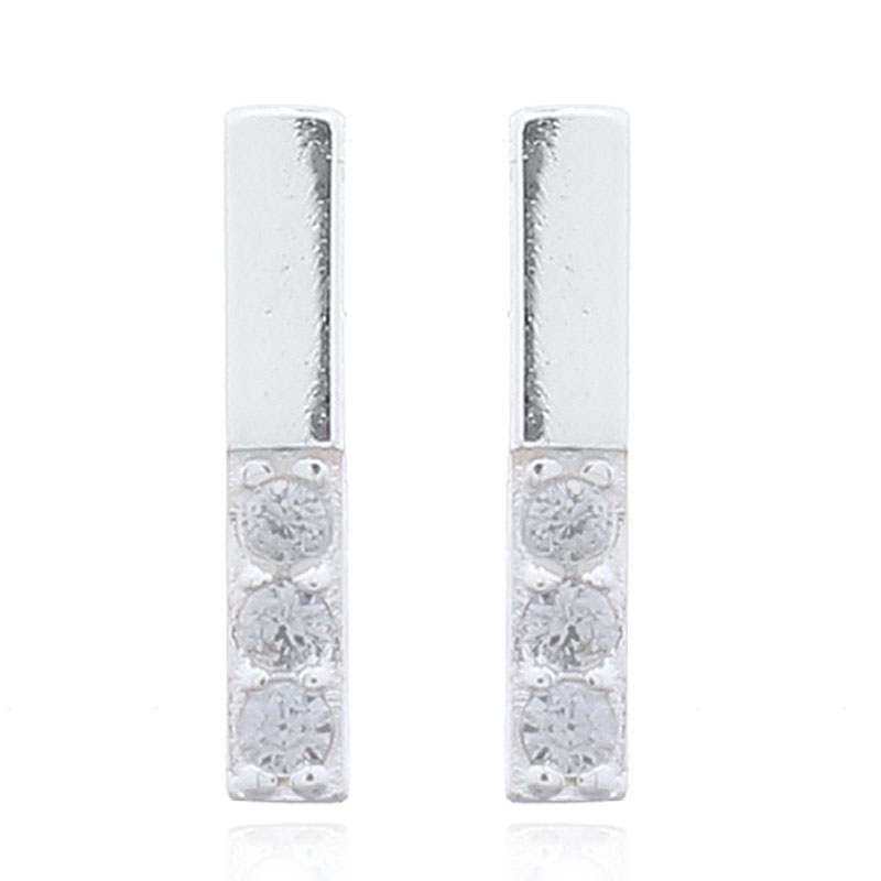 These mini thin bar earrings with radiant white cubic zirconia add subtle sophistication to any outfit. Perfect for everyday wear, they attract customers who value elegant simplicity in their jewelry choices.