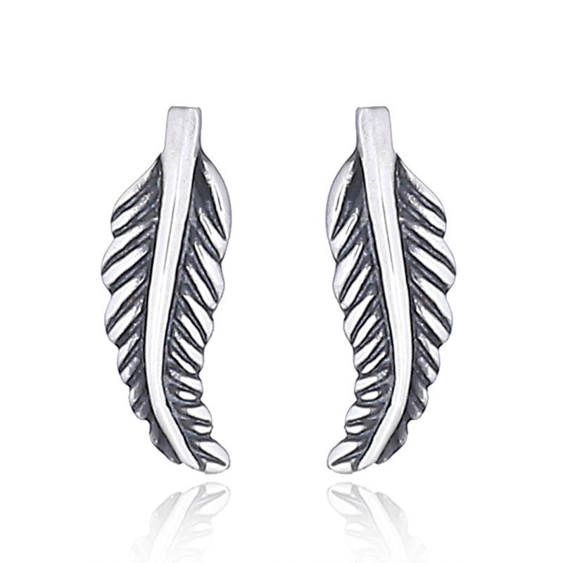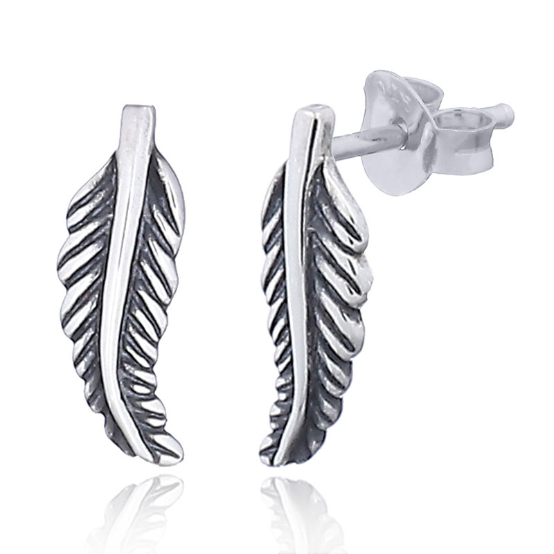 Dainty and very minimalist pair of oxidized feather studs made in sterling silver including the butterfly back studs to keep your earrings safe and secured.