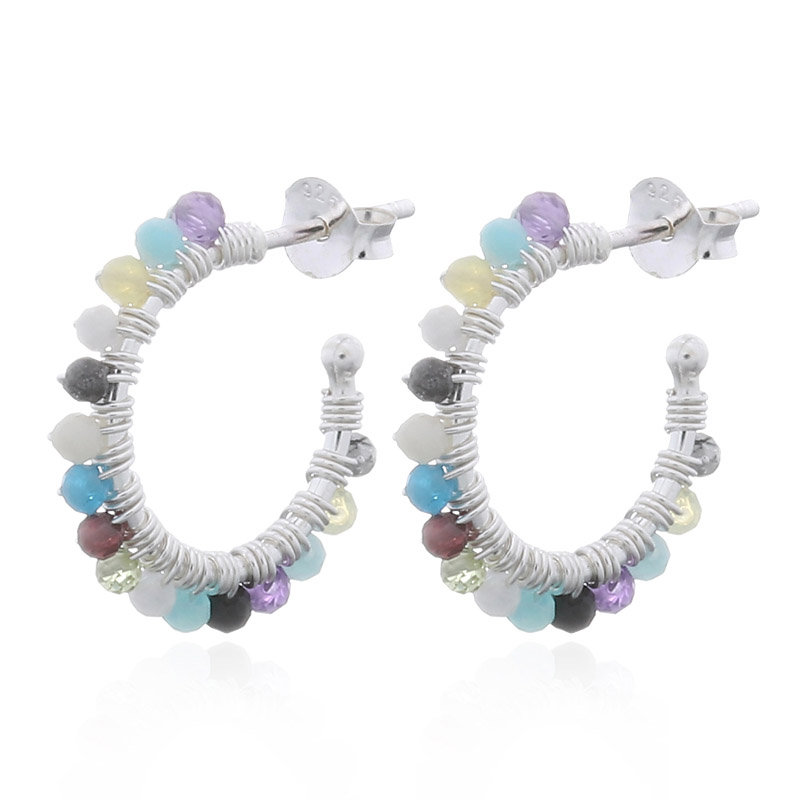 Enhance your inventory with these stylish hook stud earrings featuring a mix of colorful stones. Their unique design and eye-catching colors appeal to customers seeking fun and fashionable accessories to brighten their everyday looks.