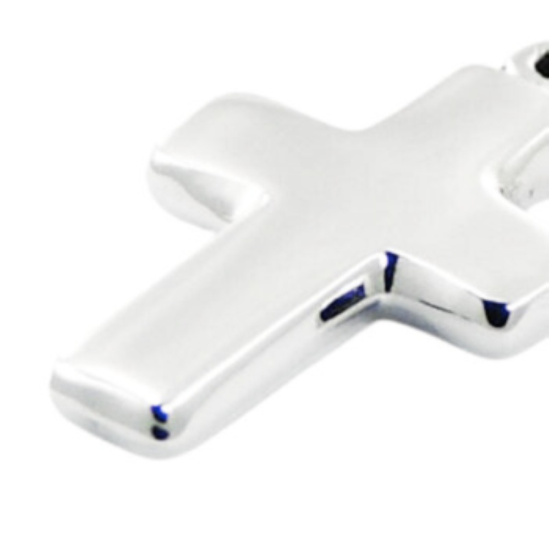 Modest Sterling Silver cross charm pendant with slightly softened edges. The cross body is hollow, yet it feels as solid piece due to its careful manufacture. A very simple cross pendant that makes a pretty gift.