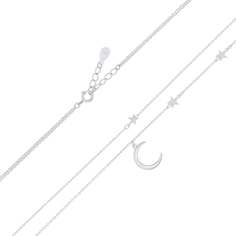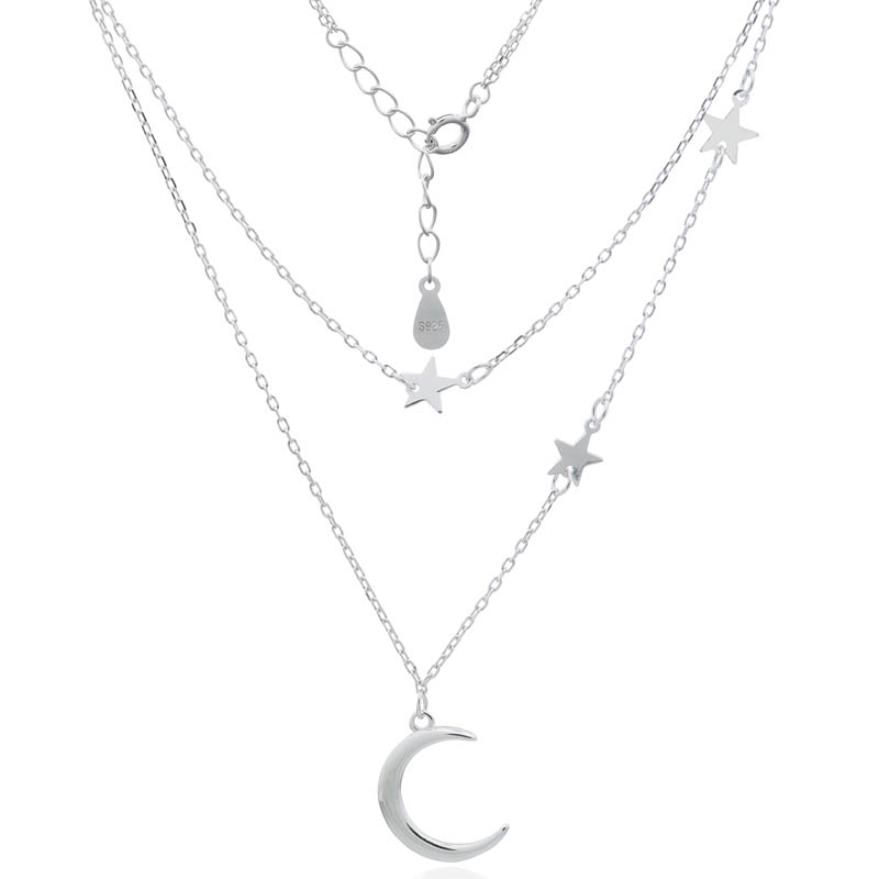One star appears in the middle of the inner chain while the longer chain features a crescent moon charm and 3 little stars next to it.