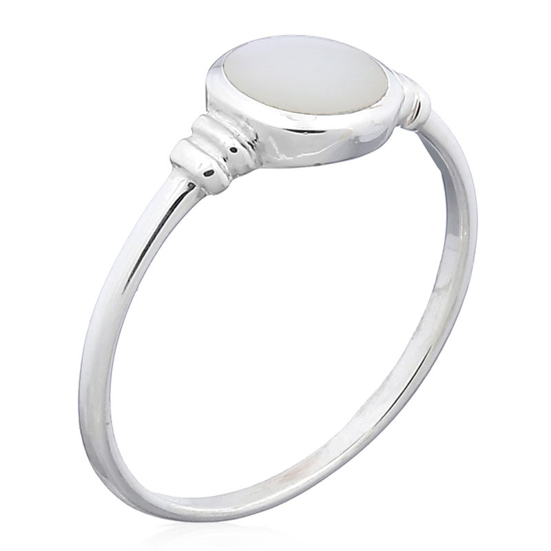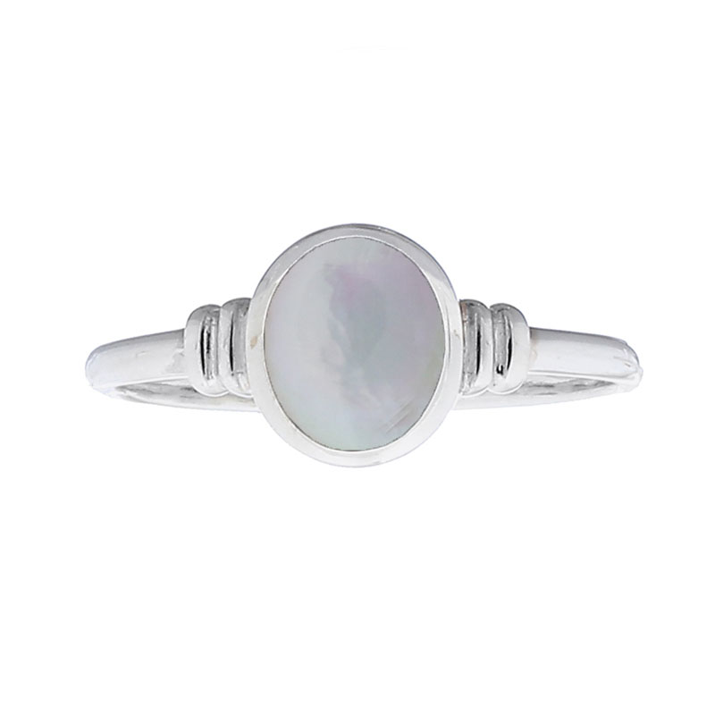 Featuring an oval mother of pearl, this ring radiates sophistication. Retailers can promote its classic design, making it a must-have for customers who appreciate timeless elegance in their jewelry.