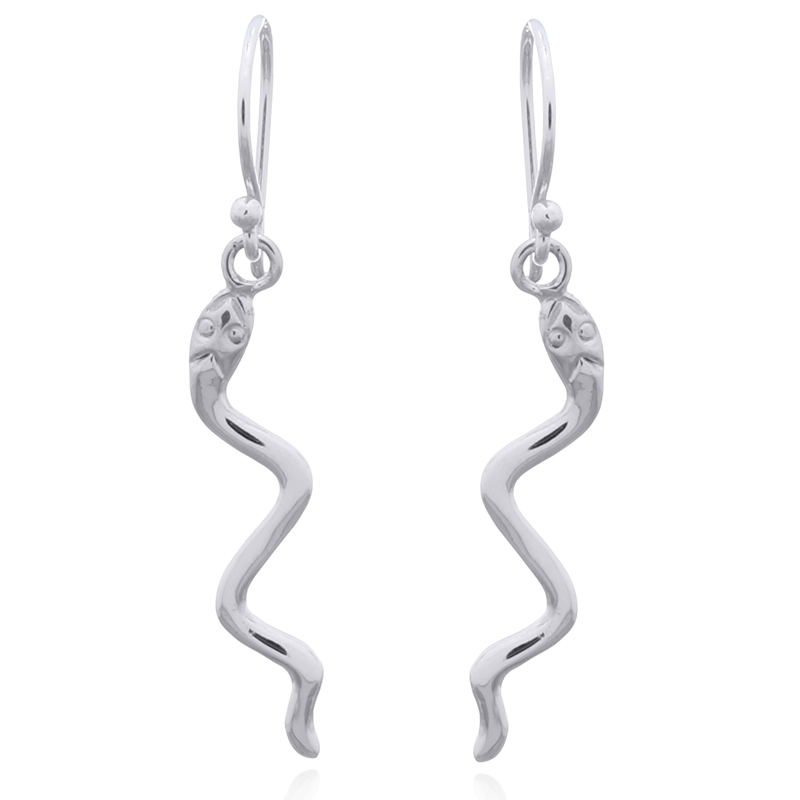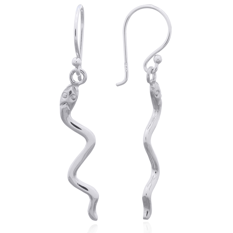 The snake moves up towards the hook in a curved line crafted with Sterling Silver and attention paid to depict this mysterious animal authentically these earrings are greatly embraced by women and very popular. Slender and delicate Dangle earrings for daily wear.