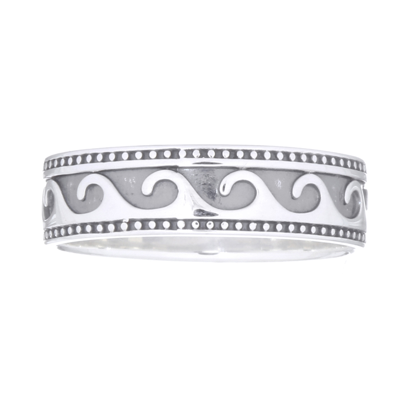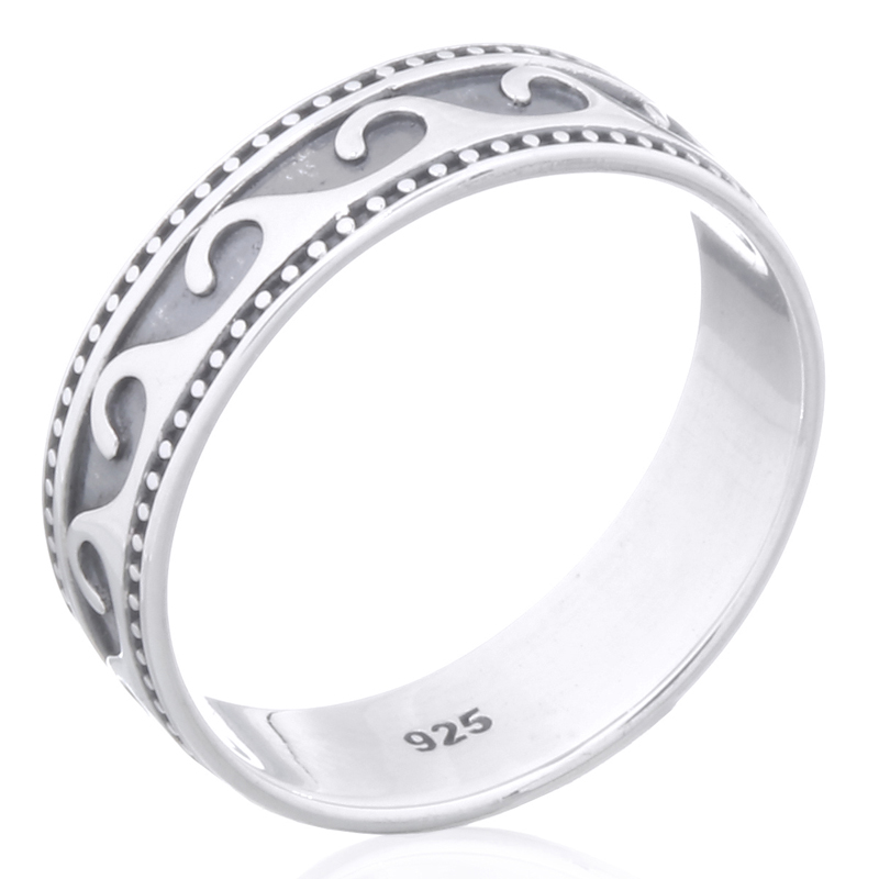 This oxidized men’s ring showcases an ocean waves pattern, offering a rugged yet stylish look. Retailers can attract adventurous customers with a piece that embodies the spirit of the sea, perfect for casual and outdoor wear.