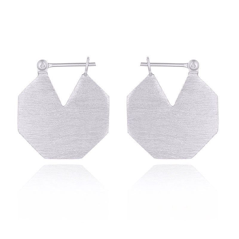 Solid flat disc octagon brushed finished sterling silver hoop earrings.