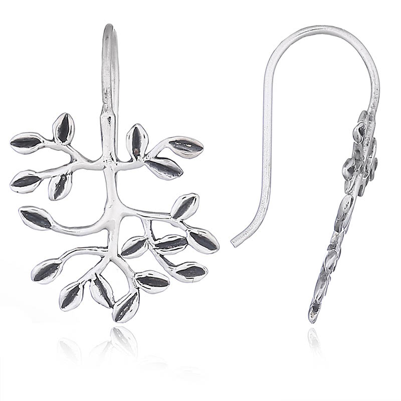 The olive branch is traditionally regarded as a symbol of peace. Beautiful polished silver lines expand outwards from a central branch creating alluring shapes. These fixed-hook silver olive branch earrings are very comfortable and easy to wear.