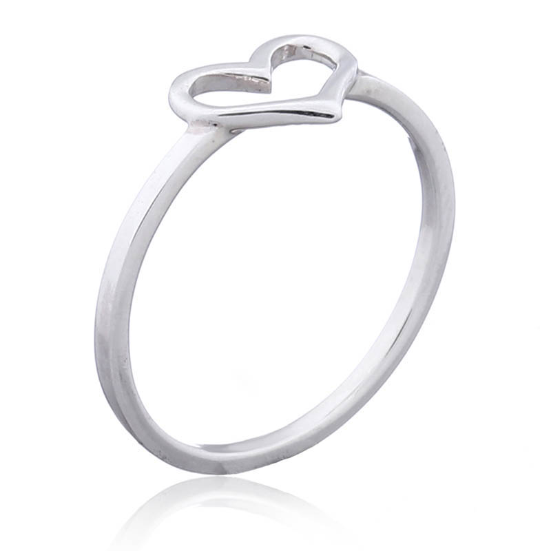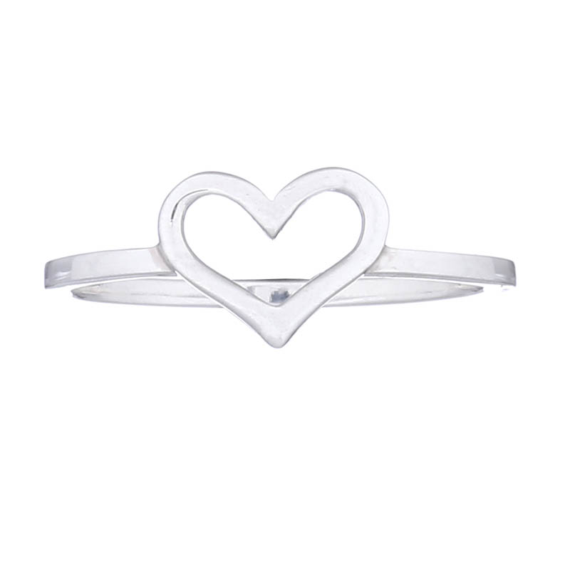 Open heart ring made in sterling silver is a cute and affordable accessory that should not be missing from your shop. Pointed angles yet with smooth edges create an attractive open heart shape ring. The square-shaped round beveled shank has been highly polished as well as the heart shape to really bring out the cool shine of the sterling silver.