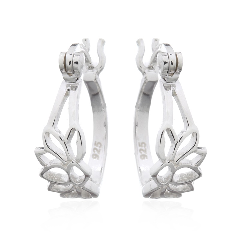 These open lotus flower hoop earrings in 925 silver offer a delicate and intricate design, perfect for customers seeking spiritual or nature-inspired jewelry. Their unique style adds a touch of elegance to any collection. Enjoy the advantages of reliable manufacturing and unique designs.