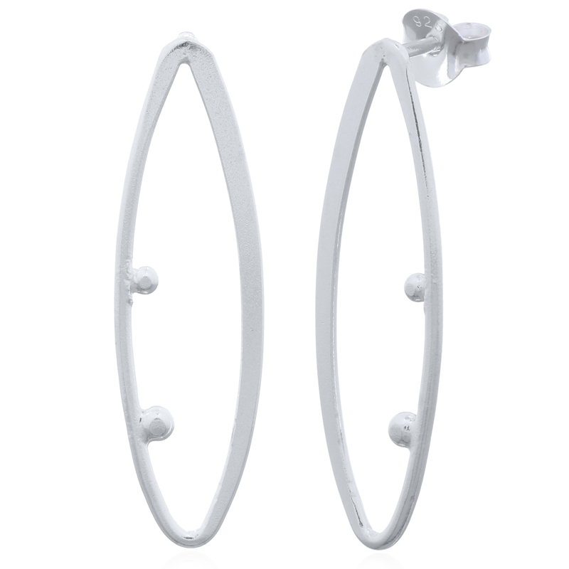 Open marquise-shaped sterling silver stud earrings with a small sphere design provide a sleek and modern look, ideal for trend-savvy customers. A must-have for any contemporary collection. Manufactured in our own facility to ensure top quality.