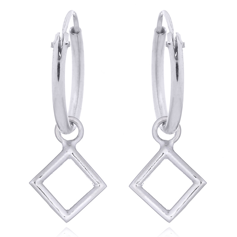 High polished 925 geometric 7mm open square charm hanged in 12mm sterling silver hoops.