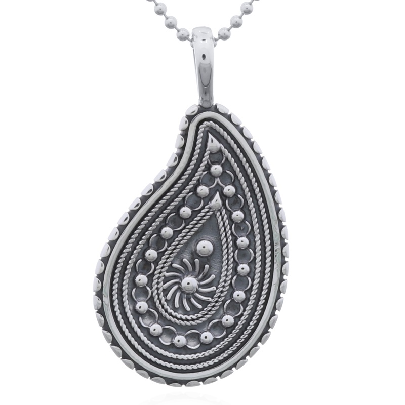 This oxidized pendant showcases an organic paisley pattern, blending traditional design with modern appeal. It’s a versatile addition to any collection. Enjoy factory pricing with a focus on quality.