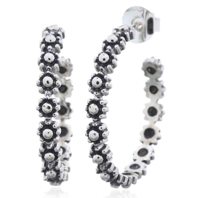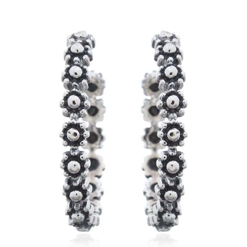 Ornate flower antiqued stud earrings in 925 silver combine vintage charm with intricate detailing. Perfect for adding a classic touch. Our factory pricing ensures excellent profit margins.