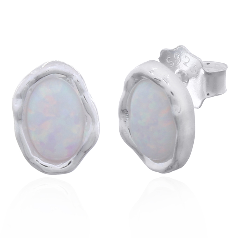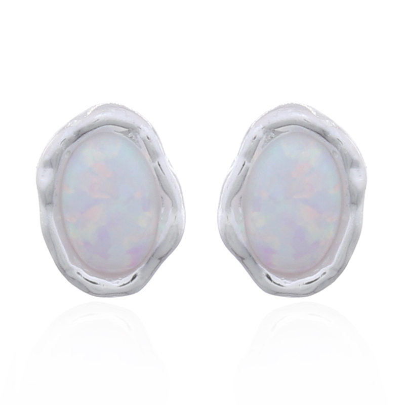 These oval opal stud earrings feature an organic shape setting that adds a modern twist to a classic design. Perfect for everyday wear, they complement any outfit. Stock these unique pieces to attract customers who appreciate contemporary elegance!