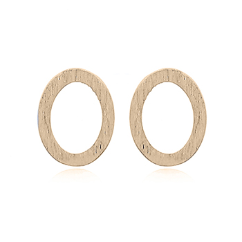 Beautiful and simple geometric open oval brushed stud earring plated in yellow gold.