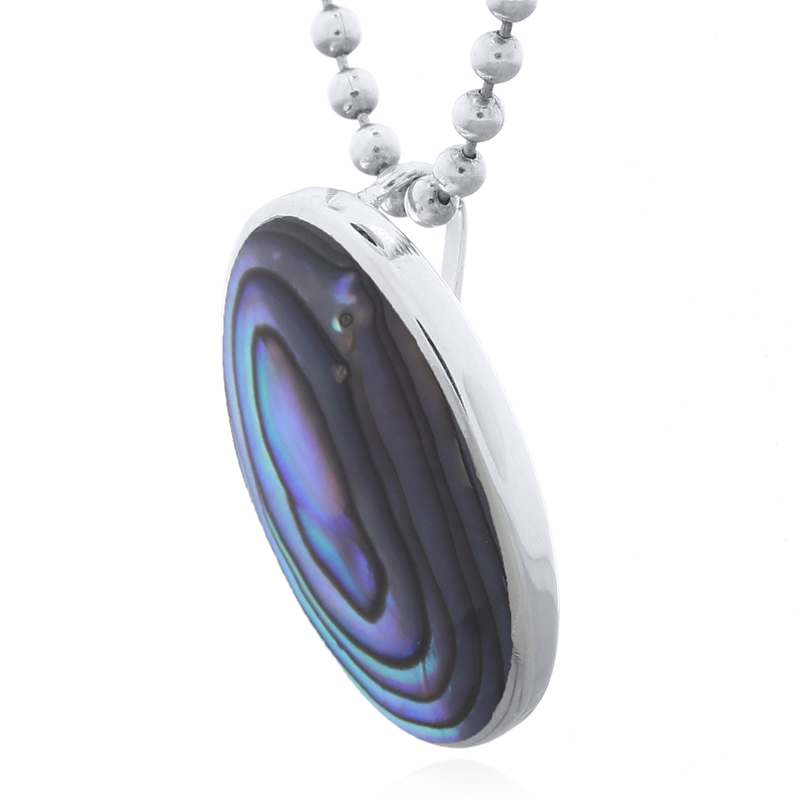 Gracefully designed, this oval pendant features a luminous Abalone Shell inlay, set in polished 925 sterling silver. Its timeless allure and soft shimmer add a touch of sophistication, making it a versatile accessory for both everyday elegance and special occasions. A perfect choice for those who appreciate classic beauty with a modern edge.