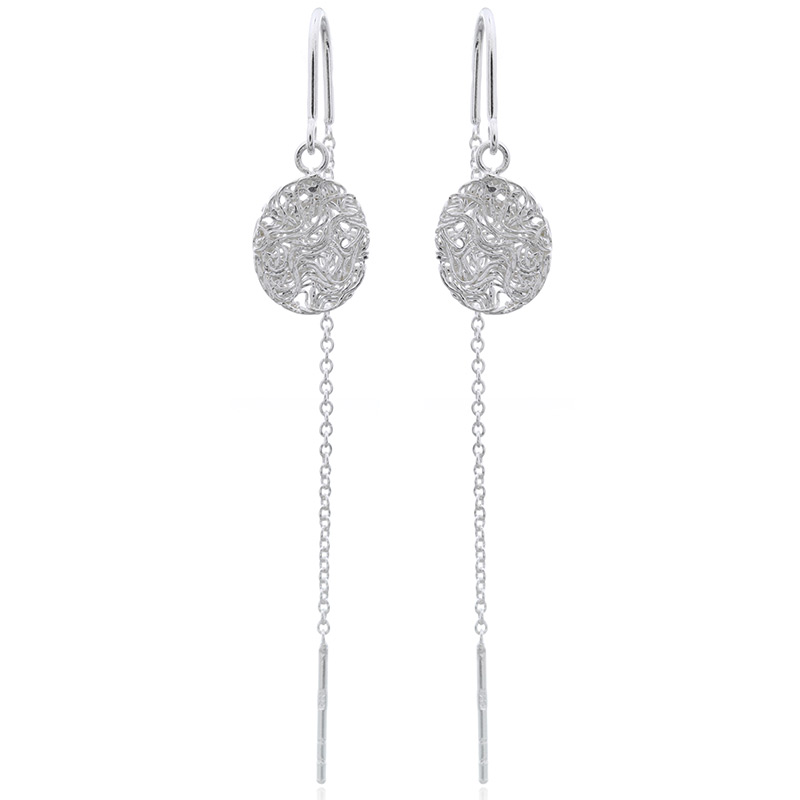 With an oval tangled flat wire design, these threader earrings offer a fresh take on a classic style. Their lightweight construction ensures comfort while adding a touch of elegance, making them appealing to customers who value both style and wearability.