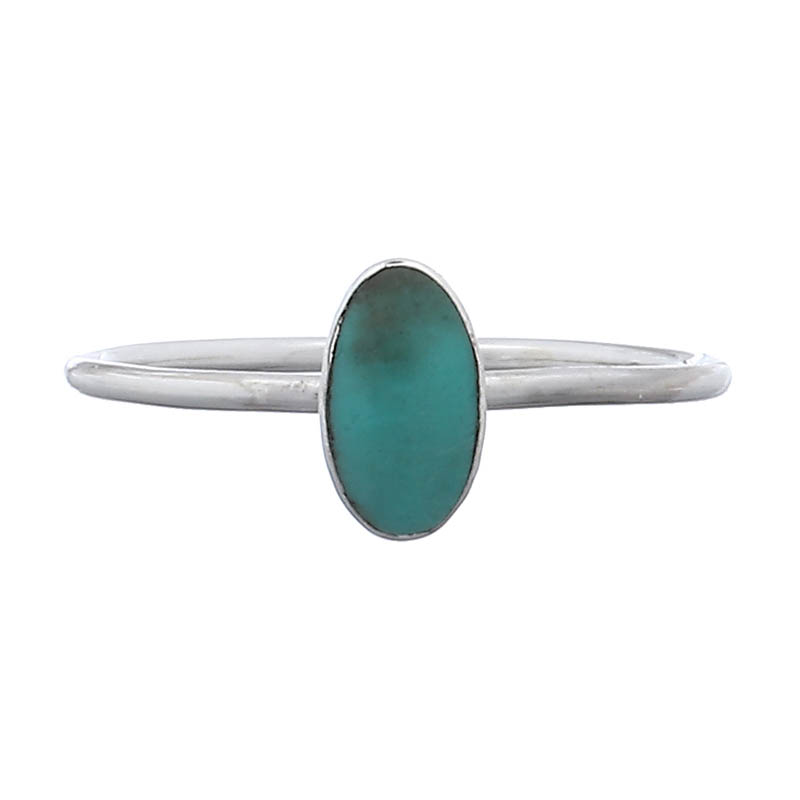Sterling Silver framed the oval turquoise and it is on the top of the 1 mm tiny round silver stackable ring.