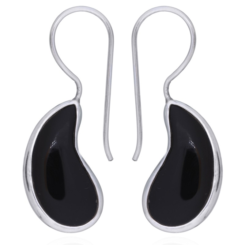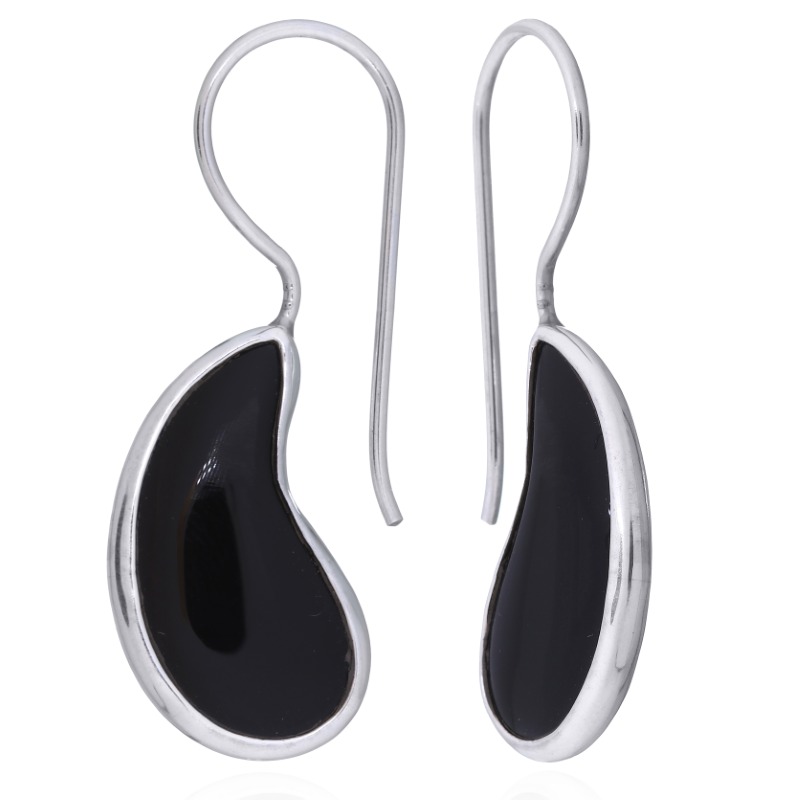 Highly polished 925 Sterling Silver surrounds the paisley cut Black Agate gemstone hand polished to a brilliant sheen the two materials produce a pair of fashionable Drop earrings of a charming appearance. Timeless elegance created by applying the shape of an ancient element that is successful in fashion since hundreds of years. With fixed hooks and handmade these earrings are simply adorable.