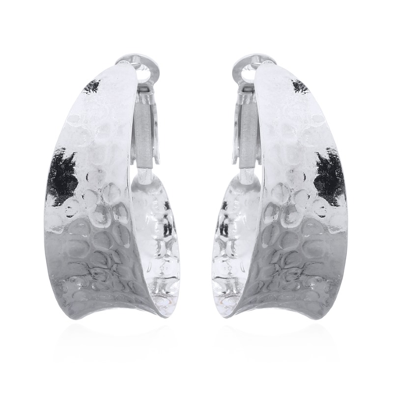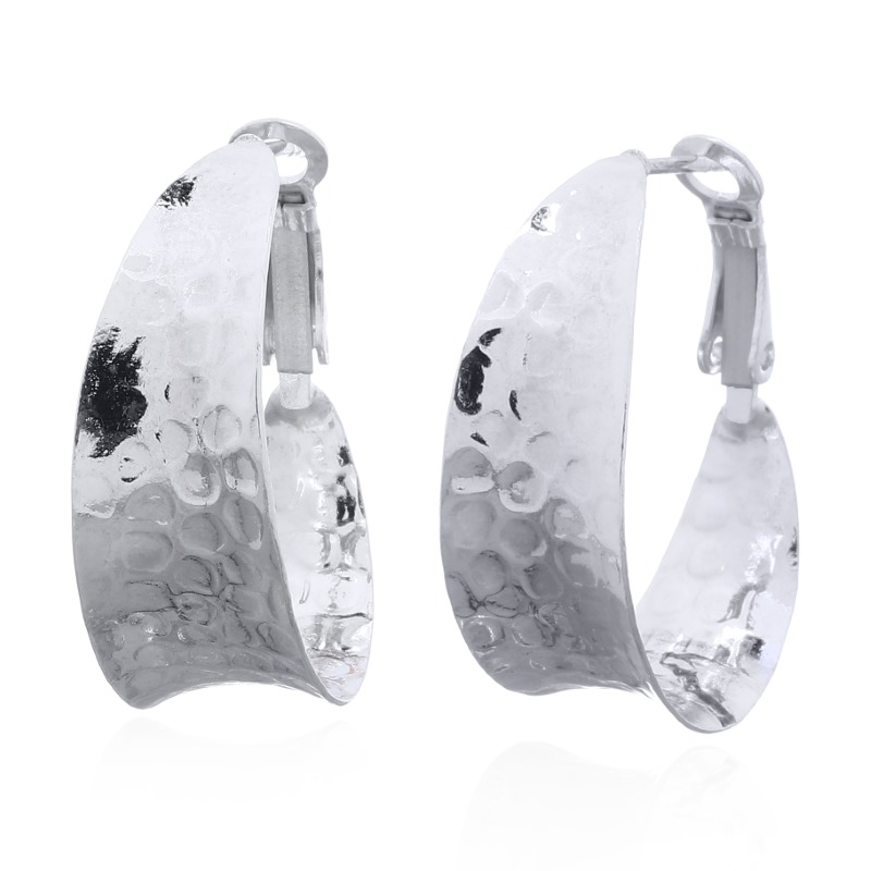 Plain 925 Sterling Silver earrings hammered oval Hoops brings a spectacular silver sparkle to the features triggered by the light that reflects on the hammered concave surface of these gorgeously tapered shiny Hoop earrings that expand to a generous width at bottom. Fastened with the hinged secured wires this plain silver jewelry looks awesome when put on it adds a charming pair of silver earrings to the looks. Versatile earrings to look attractive at the office gorgeous and elegant when visiting any official events!